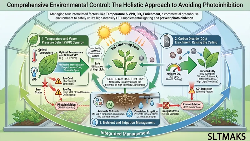 It is a critical error in commercial agriculture to view lighting in isolation. A plant’s ability to utilize high-intensity light (and thus resist photoinhibition) is entirely dependent on the corresponding status of other vital environmental parameters. SLTMAKS emphasizes to all our B2B partners that maximizing the benefits of LED supplemental lighting requires a holistic environmental control strategy.